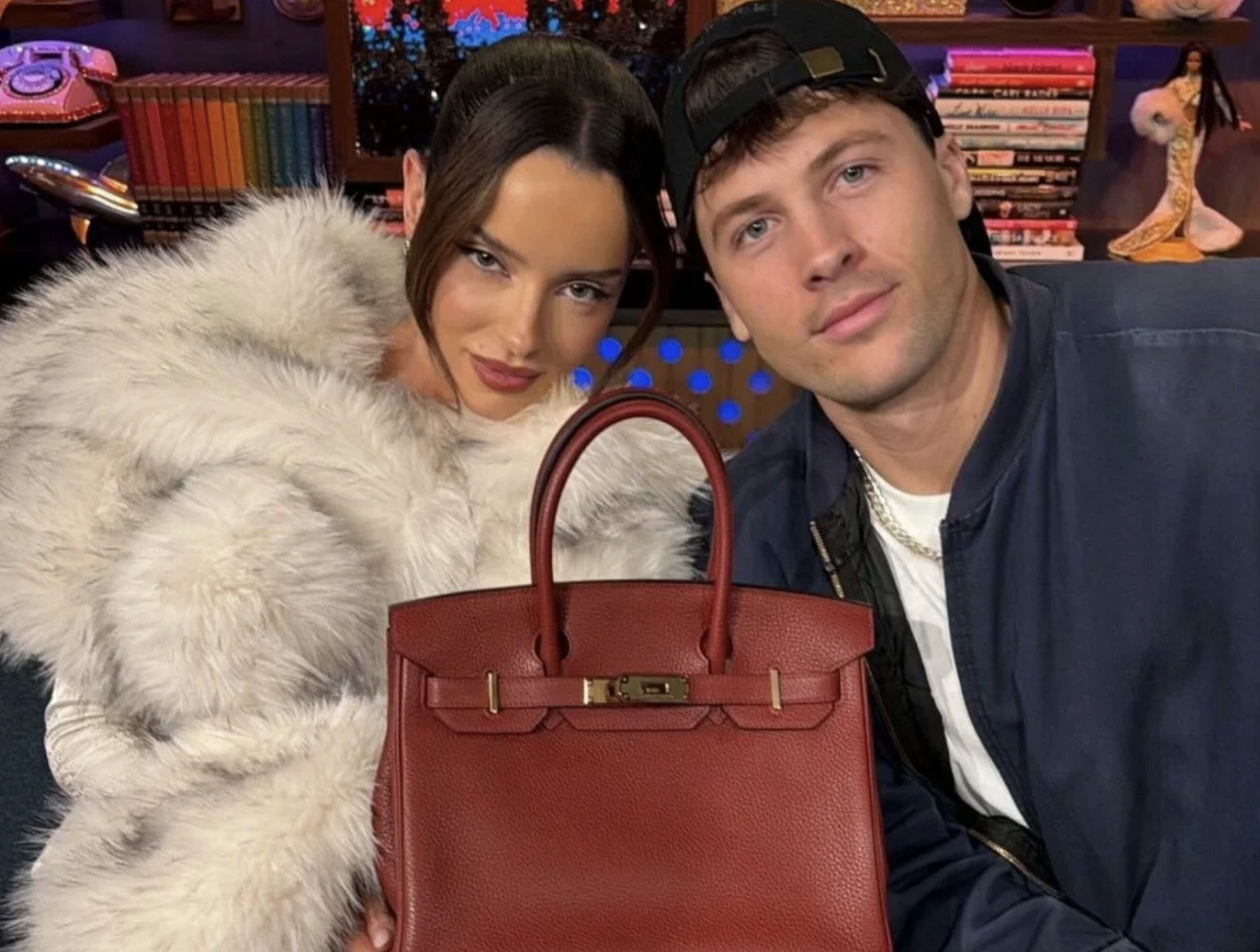 Rob made amends by dipping into his Traitors prize money to buy Maura a burgundy Hermès Birkin bag, which he gifted her on Bravo’s Watch What Happens Live.